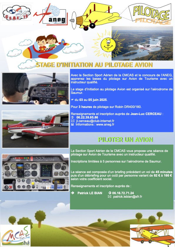 Avec la Section Sport Aérien de la CMCAS et le concours de l’ANEG, apprenez les bases du pilotage sur Avion de Tourisme avec un instructeur qualifié.
